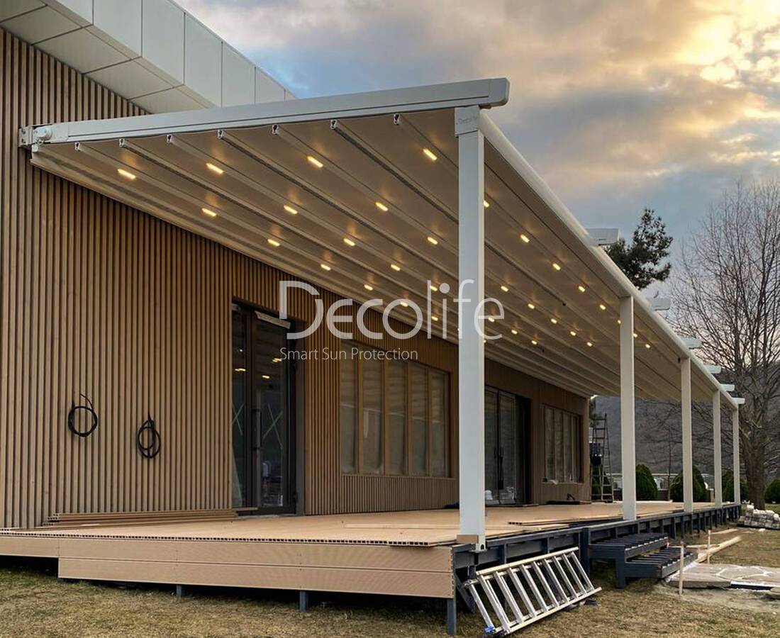 Тентовые перголы Decolife Project Light, объект реализован партнером "TENT VERTEX" - г. Алматы, р-н "Нават"