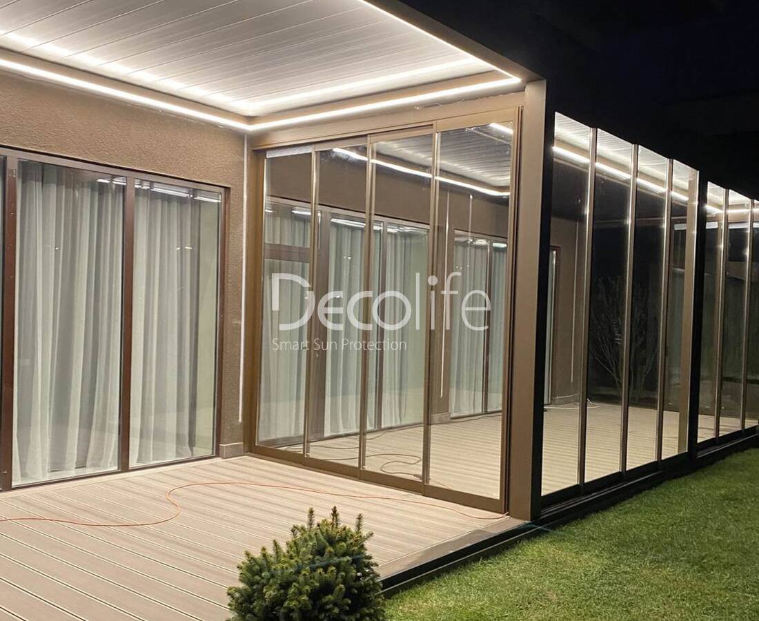 Пергола Decolife Bioclimatic B700-20С + Раздвижное безрамное остекление S100 - Минская обл., д. Светлый путь