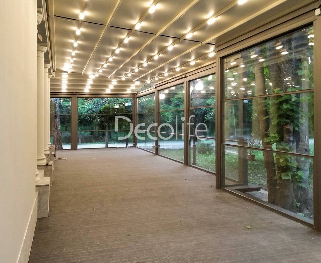 Пергола тентовая Decolife Project Light + Подъемное остекление W500 - реализовано партнером "ООО Люкс Террас" - Московская обл.
