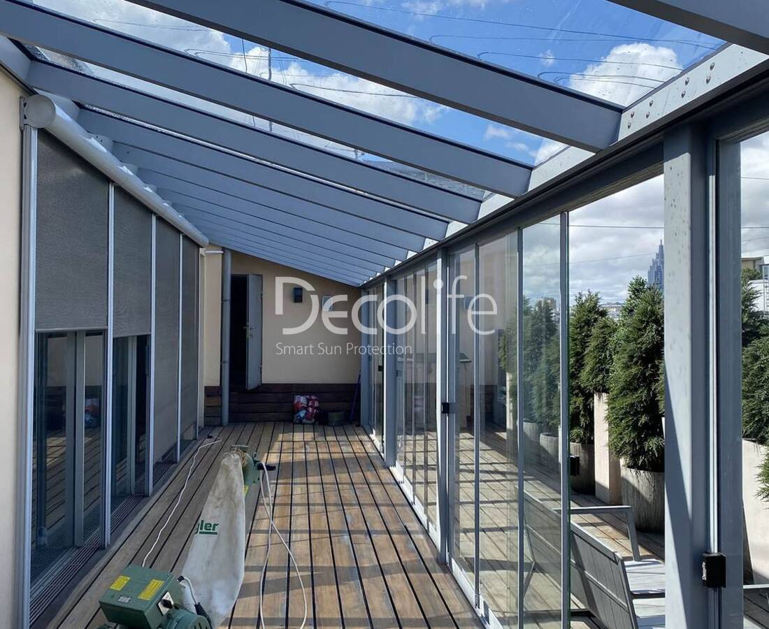 Пергола Decolife Bioclimatic B500-25П + Раздвижное остекление S500, реализовано партнером "ООО Люкс Террас" - г. Москва