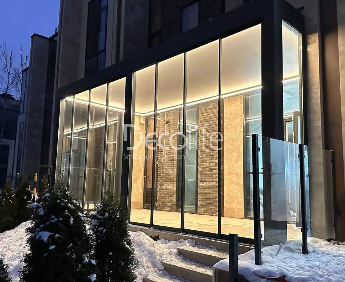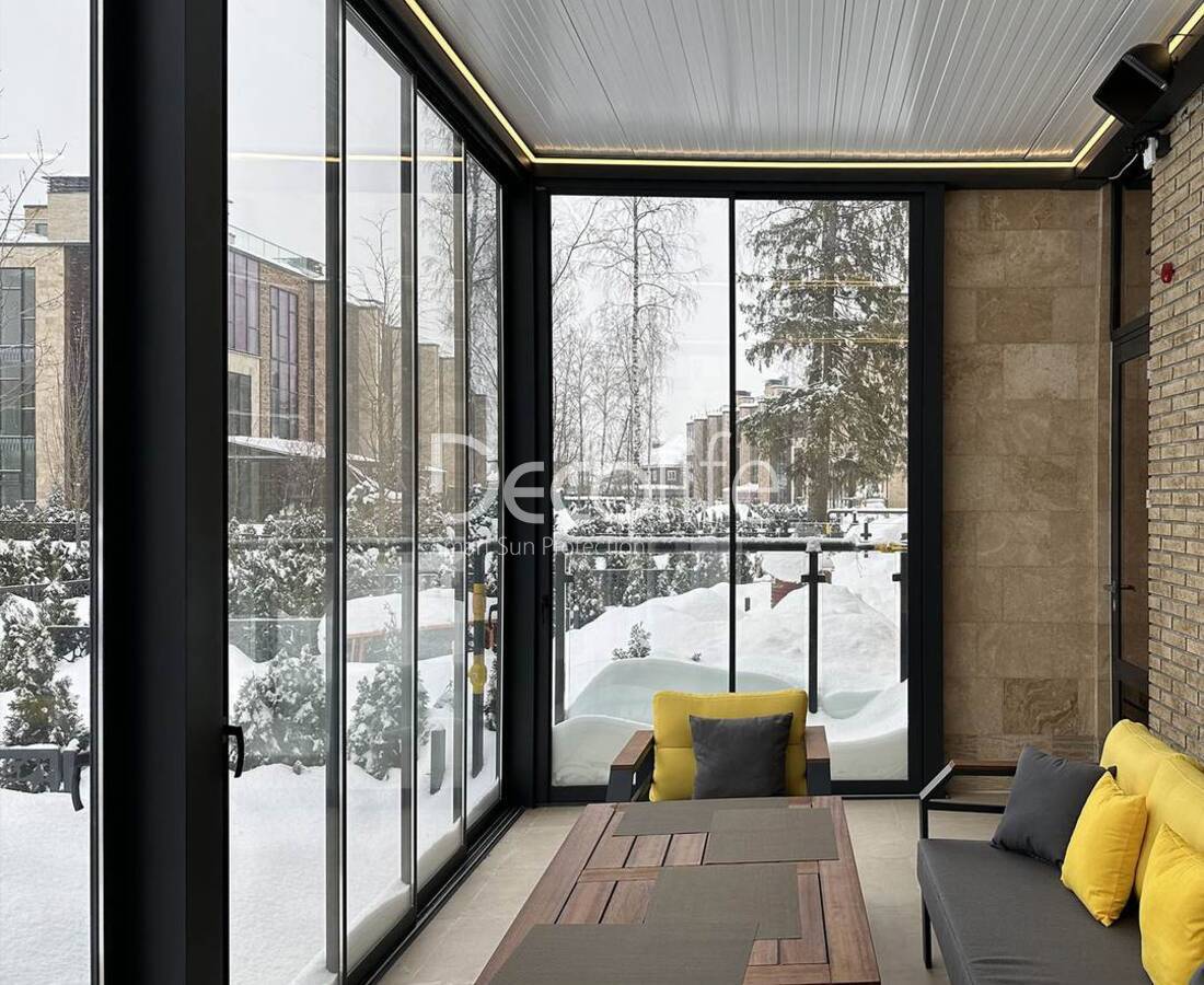 Пергола Decolife B600 PIR+ Раздвижное остекление S500 и оконная/дверная система FW75 , реализовано партнером "ООО Люкс Террас" - г. Москва