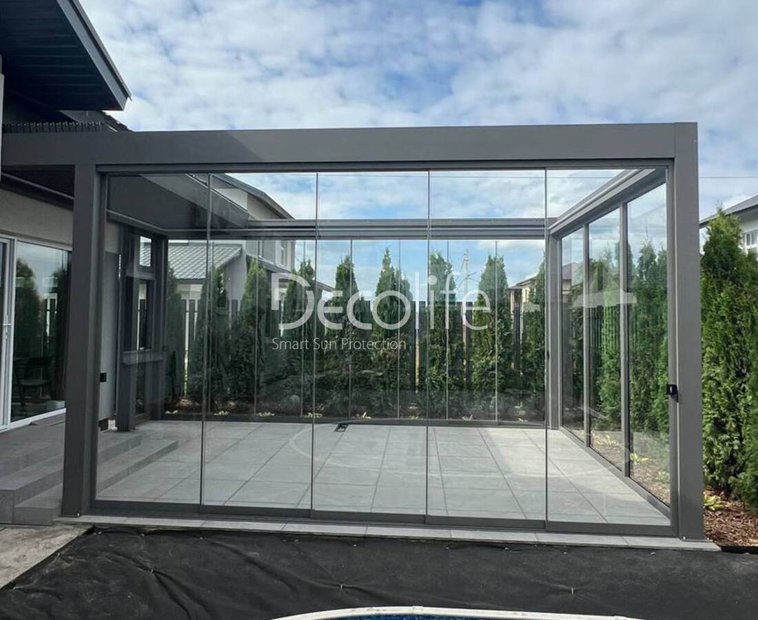 Пергола Decolife B700-25С + раздвижное остекление S200 + входная двери и глухое остекление FW84, объект реализован партнером @markizaqueen - г. Уфа